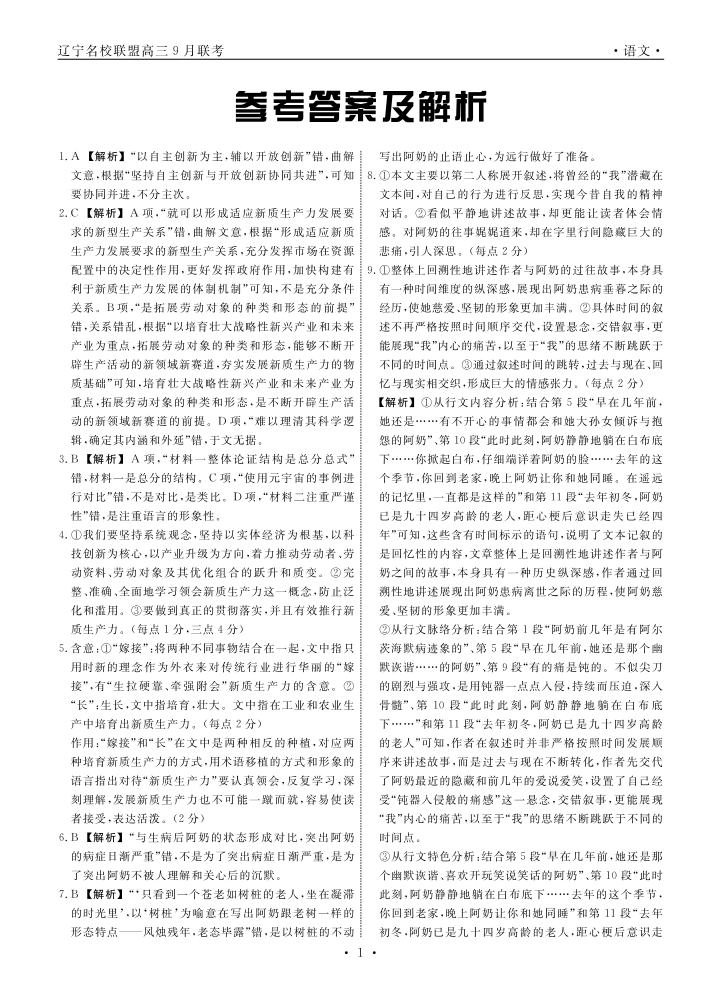 辽宁省名校联盟2024年高三9月份联合考试+语文答案