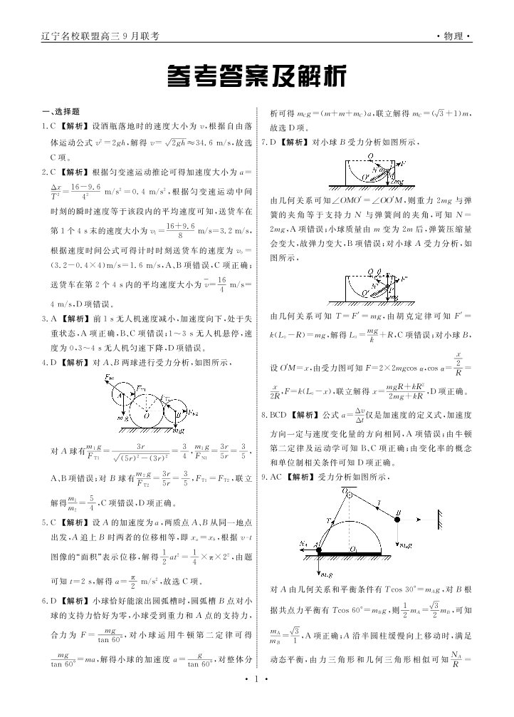 辽宁省名校联盟2024年高三9月份联合考试+物理答案