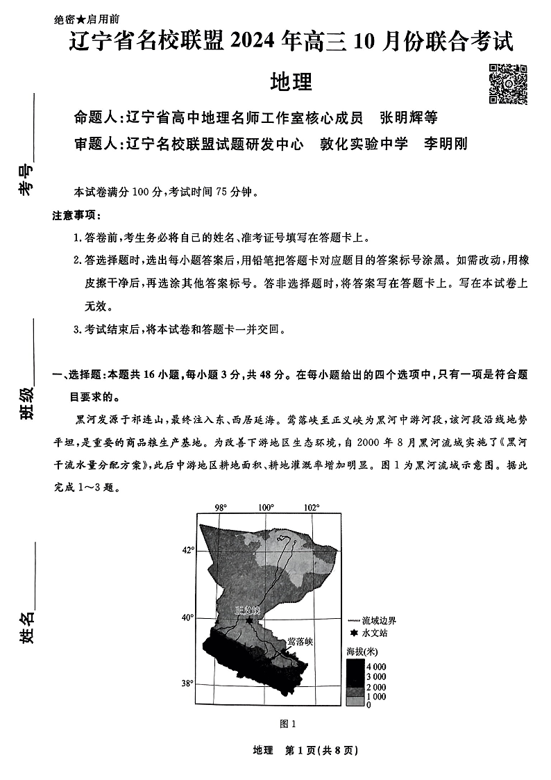 辽宁省名校联盟2024年高三10月份联合考试+地理