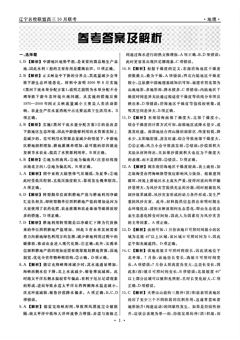 辽宁省名校联盟2024年高三10月份联合考试+地理答案