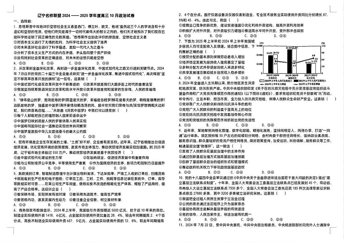 辽宁省名校联盟2024年高三10月份联合考试+政治