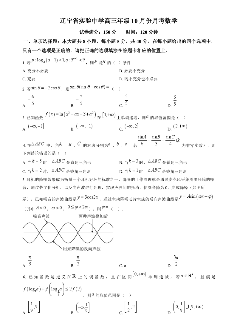 辽宁省实验中学2025届高三上学期第一次月考+数学