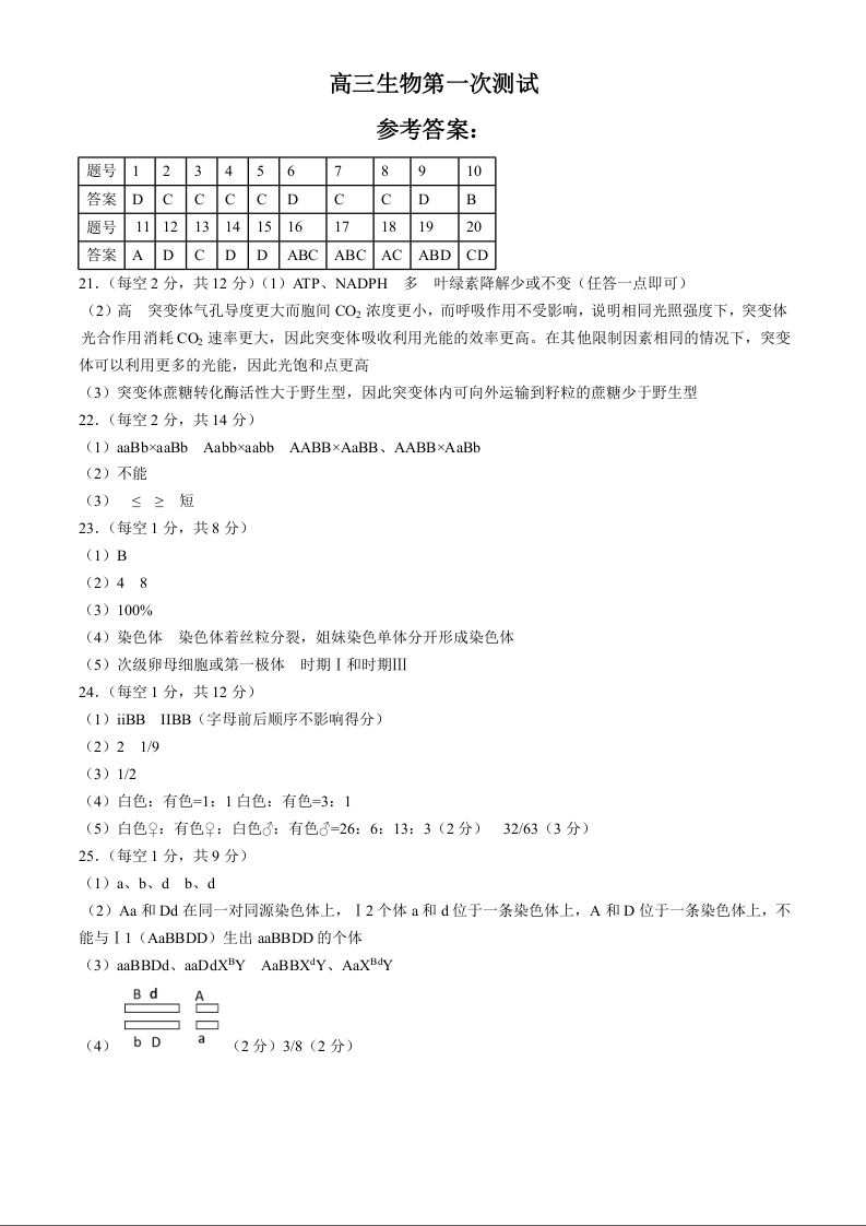 辽宁省实验中学2025届高三上学期第一次月考+生物答案
