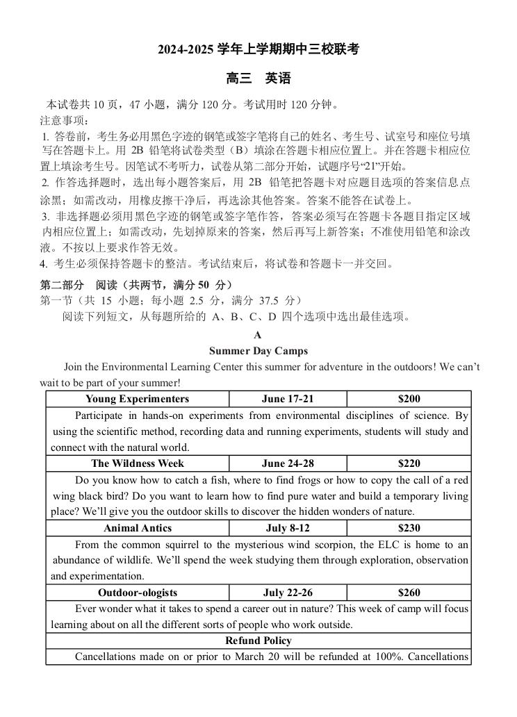 广东省广州外国语、广大附中、铁一中学等三校2025届高三上学期期中联考英语及答案