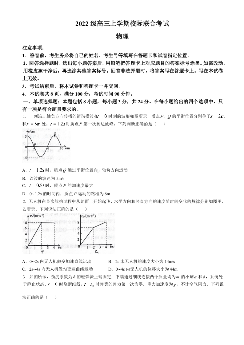 山东省日照市校际联合考试2025届高三上学期11月期中考试物理