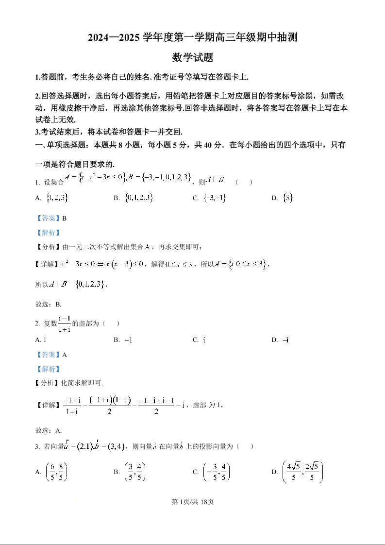 江苏省徐州市2025届高三上学期11月期中考试数学(精品解析版)