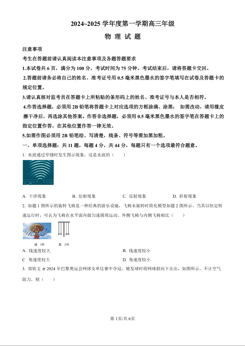 江苏省徐州市2025届高三上学期11月期中考试物理(原卷版)