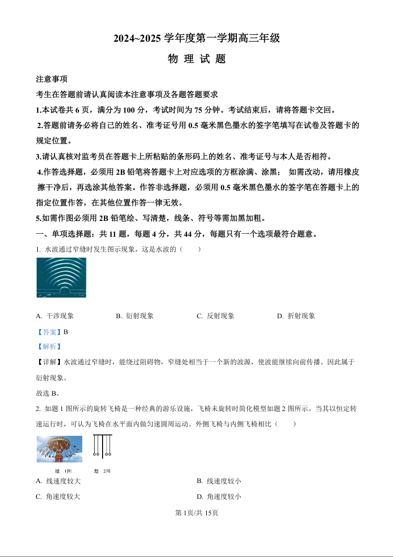 江苏省徐州市2025届高三上学期11月期中考试物理(精品解析版)