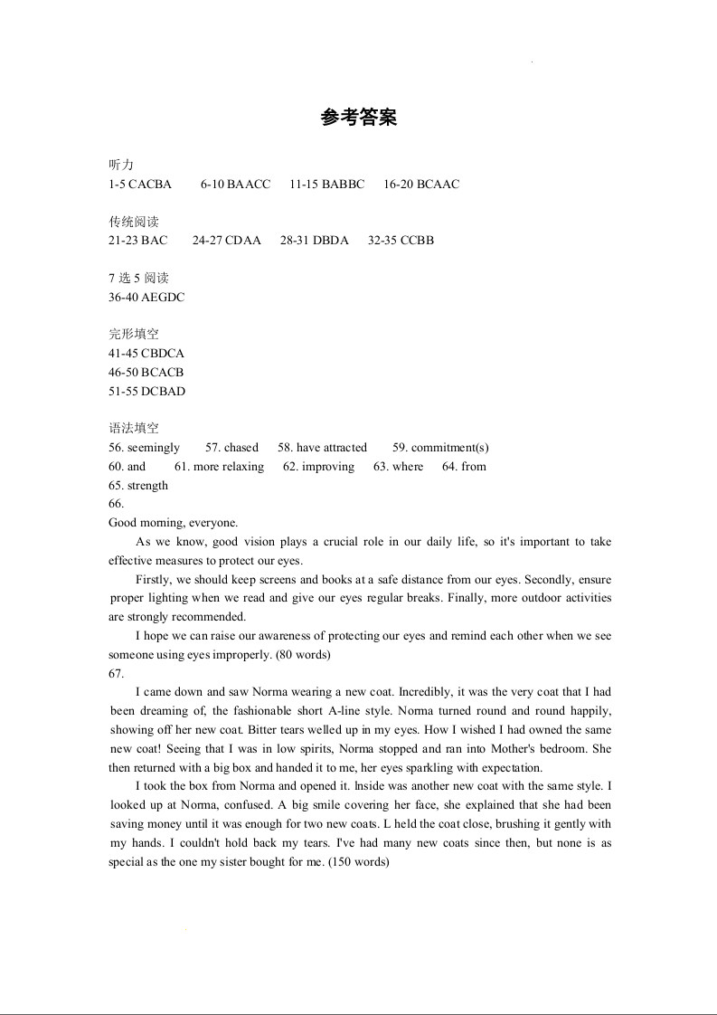 江苏省连云港市2025届高三上学期11月期中考试英语答案