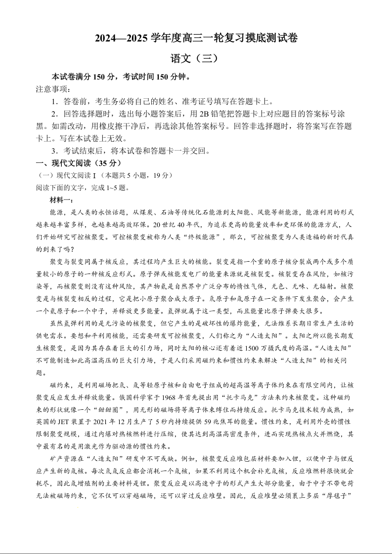 河北省沧州市三校联考2025届高三上学期11月期中考试语文