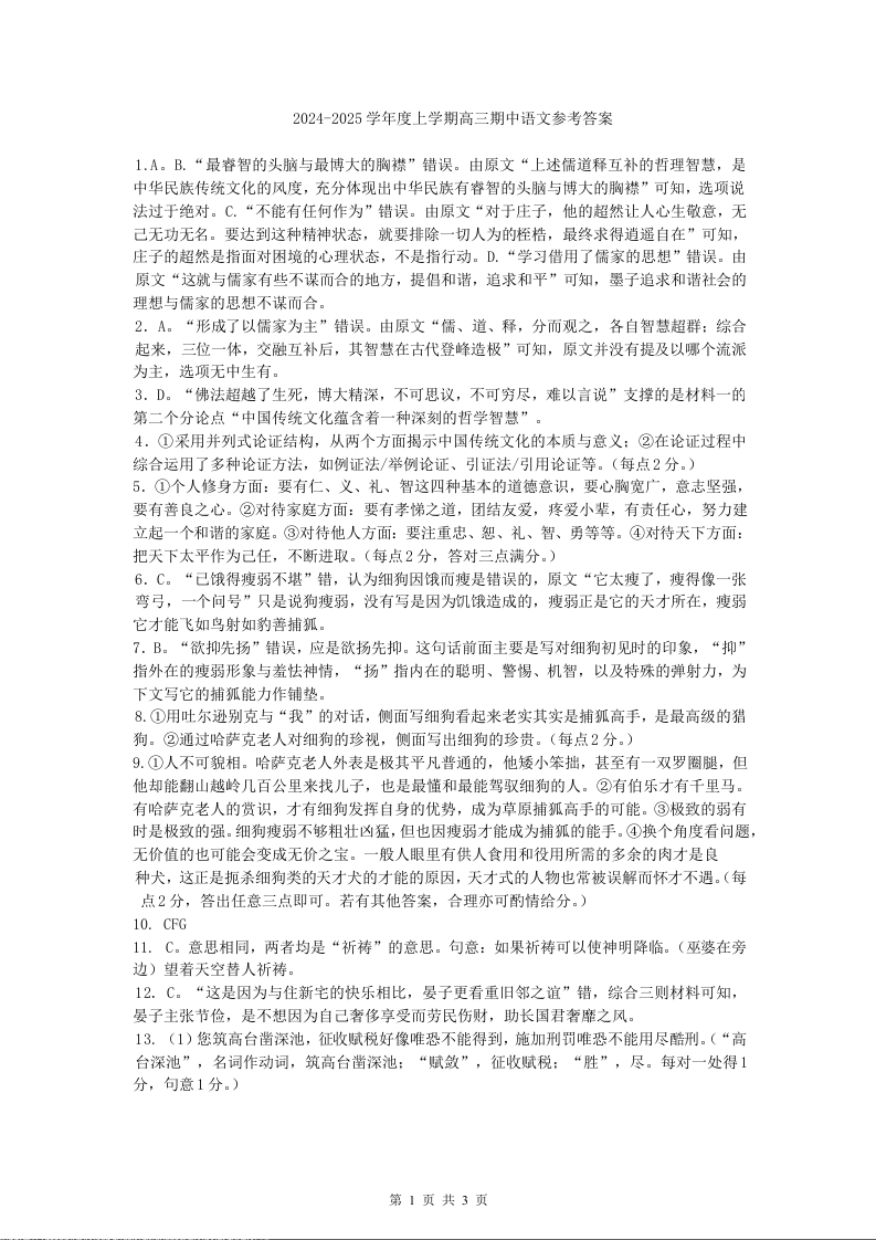 辽宁省实验中学2024-2025学年度高三上学期期中阶段测试 语文答案