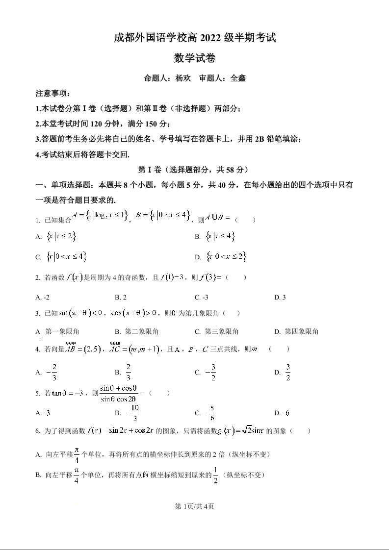 四川省成都外国语学校2025届高三上学期11月期中考试数学