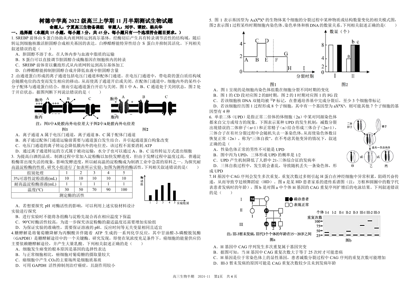 四川省成都市树德中学2025届高三上学期期中考试生物及答案