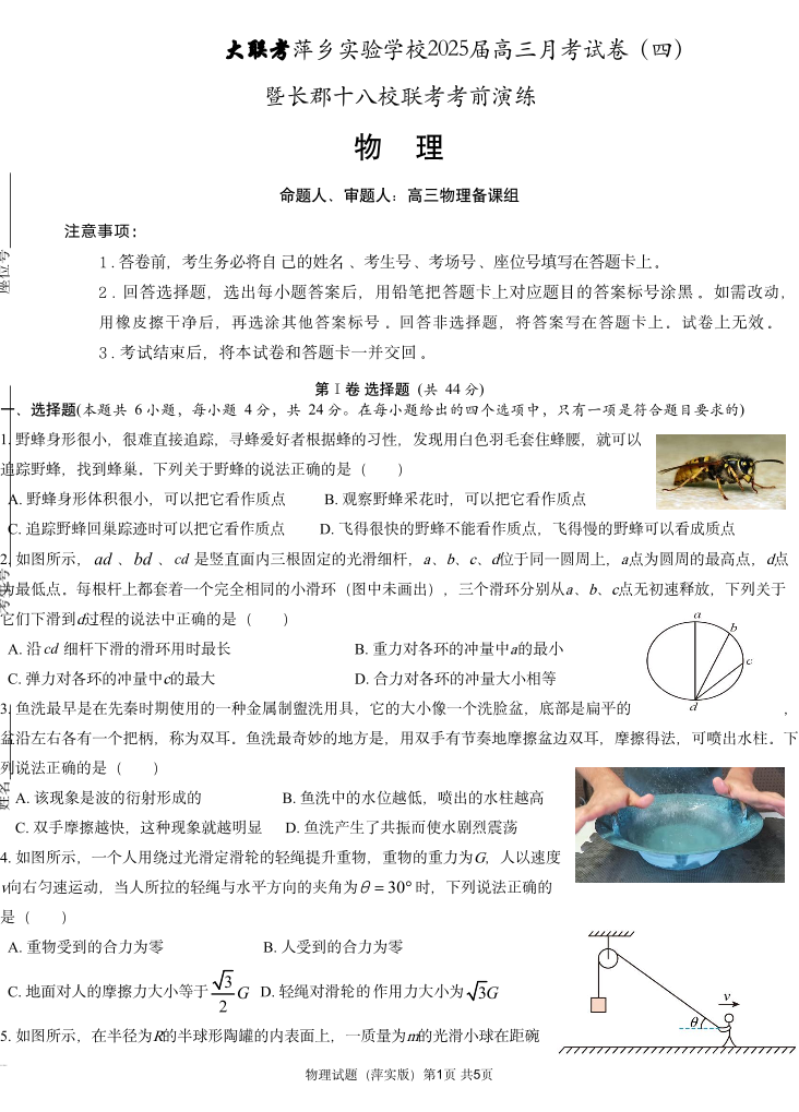 江西省萍乡实验学校2025届高三月考试卷(四)暨长郡十八校联考考前演练物理