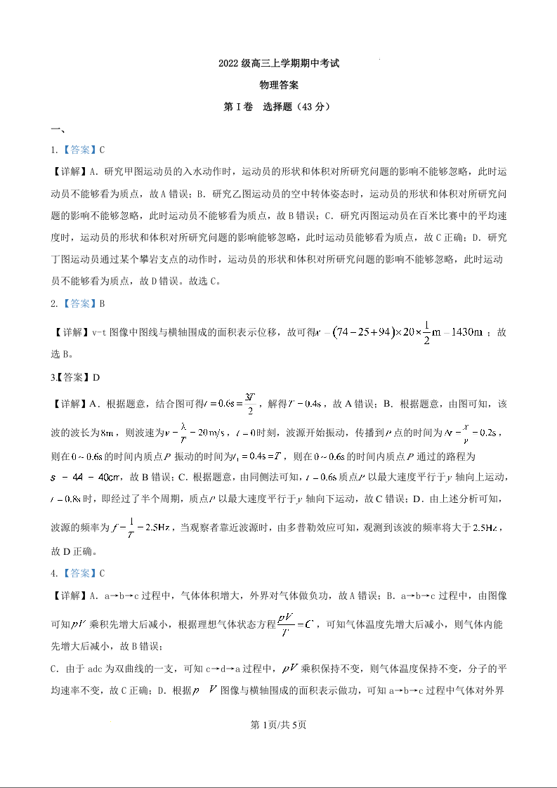 四川省仁寿第一中学校南校区2022级高三上学期期中考试物理答案