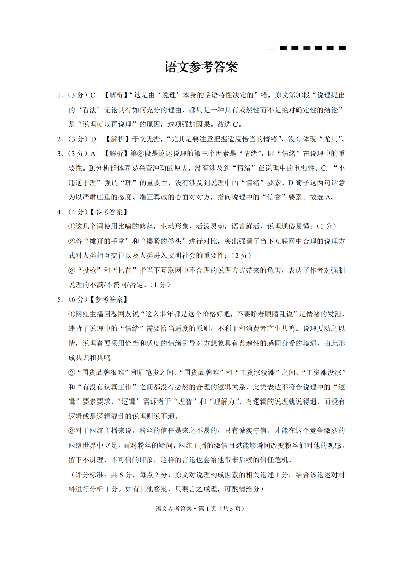 重庆市第八中学2025届高考适应性月考卷(三)语文答案