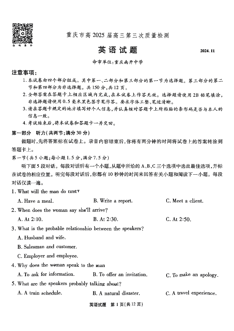 Copyright © 2025 名校考试研题中心资源平台 All rights reserved 鲁ICP备2024123781号-1