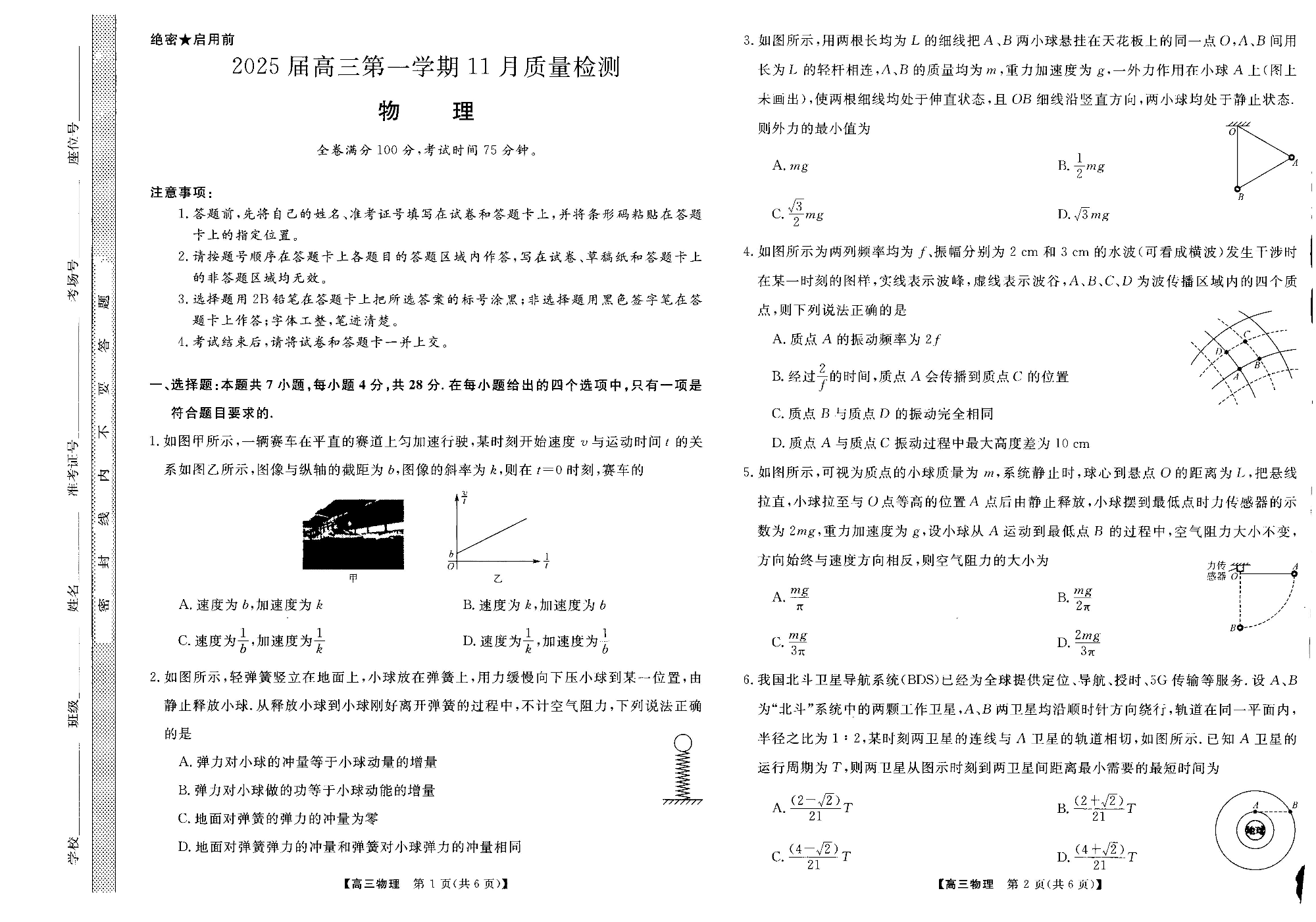 河南省华师联盟2025届高三第一学期11月质量检测 物理及答案