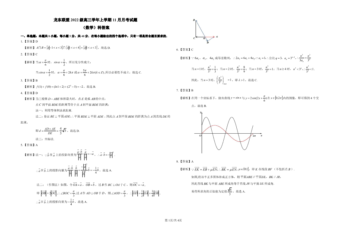 黑龙江省龙东联盟2025届高三上学期11月月考数学答案