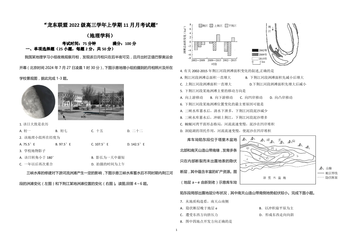 黑龙江省龙东联盟2025届高三上学期11月月考地理