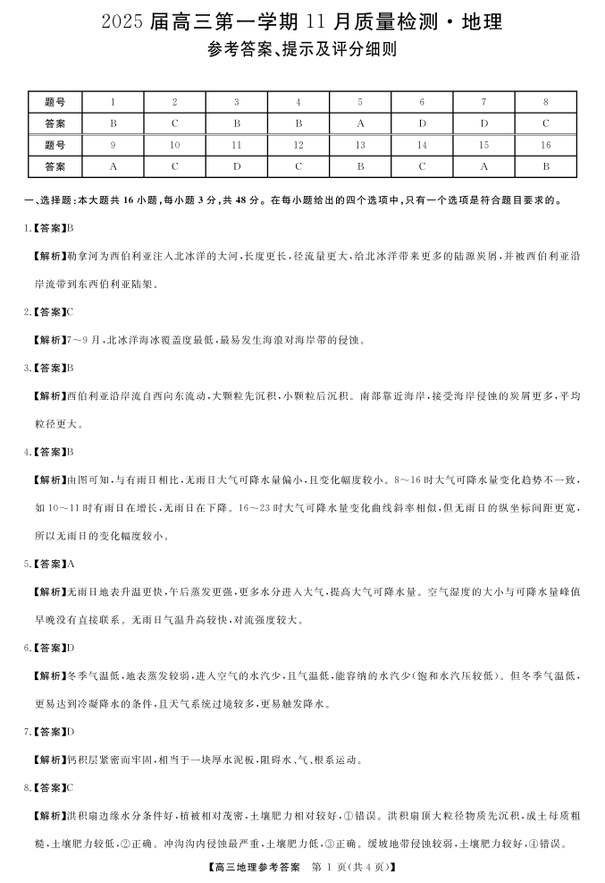 河南省部分示范性高中2025届高三上学期11月期中质量检测地理答案