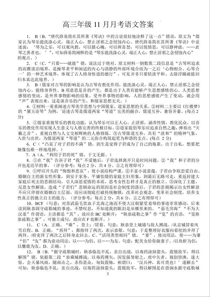 湖北省沙市中学2024-2025学年高三上学期11月月考语文答案