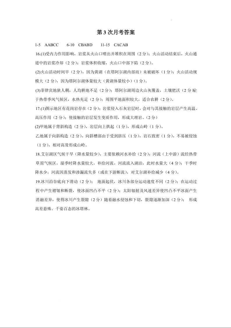 海南省海口市海南中学2025届高三上学期第三次月考地理答案