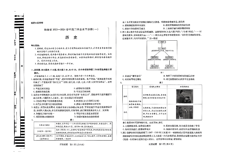 海南省2024-2025学年高三上学期学业水平诊断(一)历史+答案