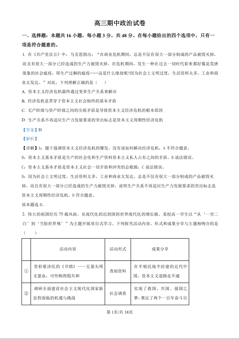 吉林省通化市梅河口市第五中学2025届高三上学期11月期中考试政治(精品解析版)