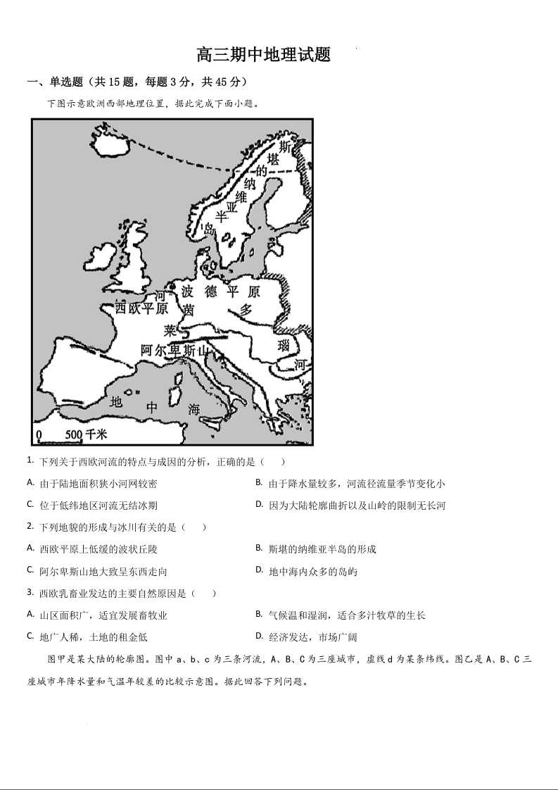 吉林省通化市梅河口市第五中学2025届高三上学期11月期中考试地理+答案