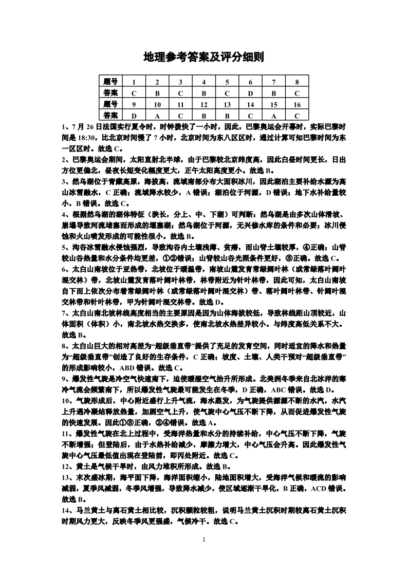 江西省赣州市十八县(市、区)二十四校2025届高三上学期期中考试地理答案