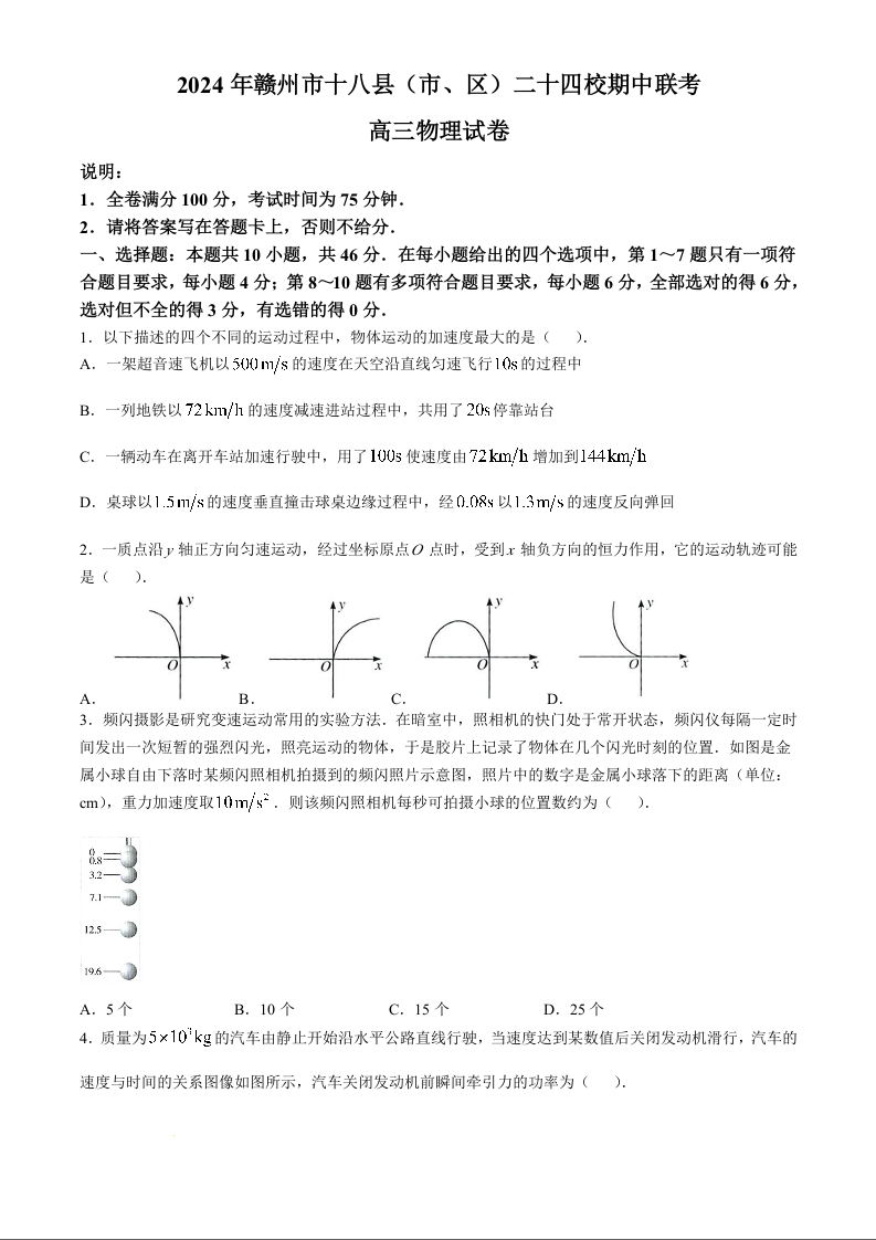 江西省赣州市十八县(市、区)二十四校2025届高三上学期期中考试物理+答案