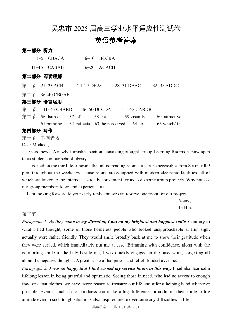 宁夏回族自治区吴忠市高三上学期11月学业水平适应性考试英语答案