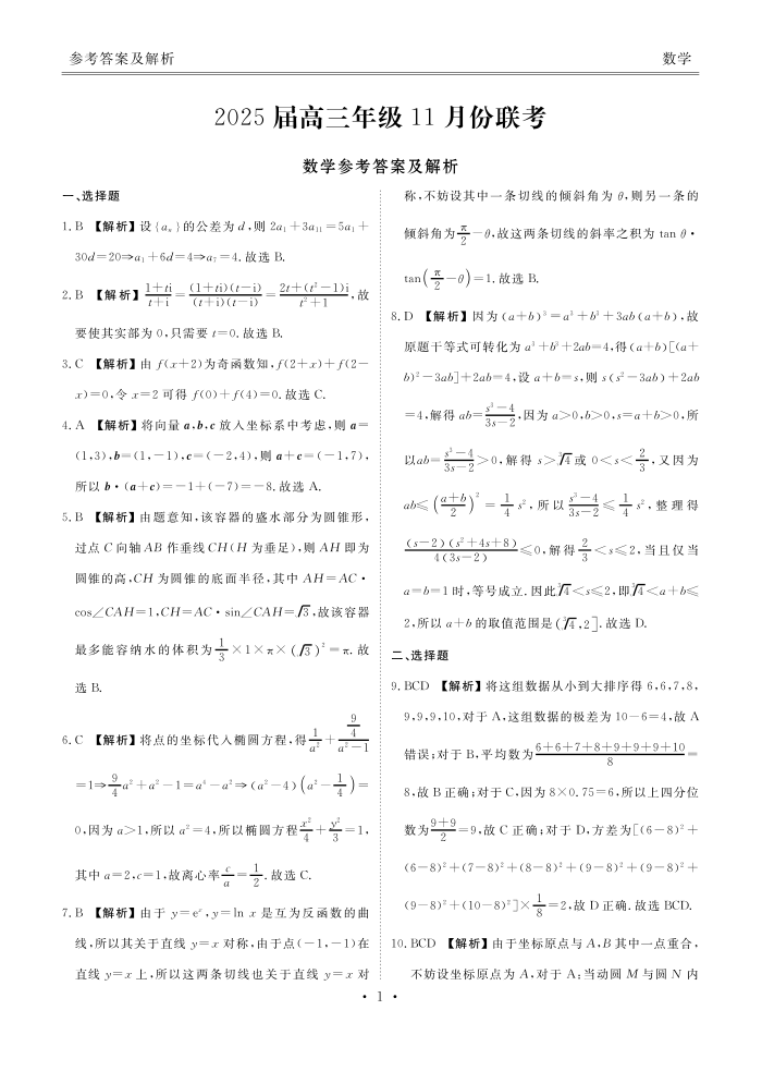 广东省区域高中2025届高三上学期11月大联考数学答案