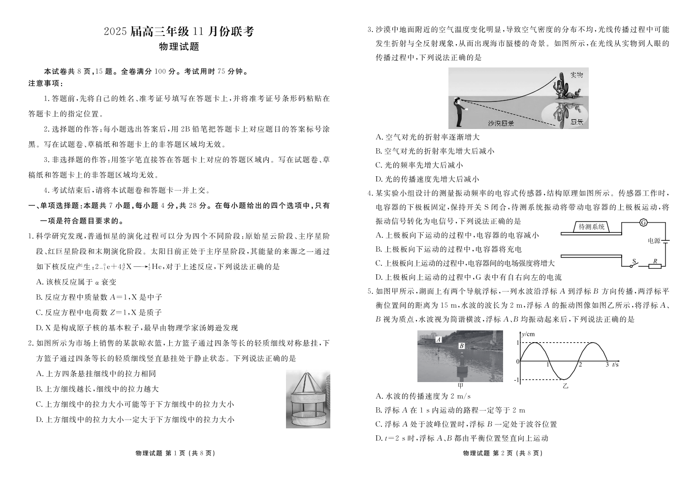 广东省区域高中2025届高三上学期11月大联考物理