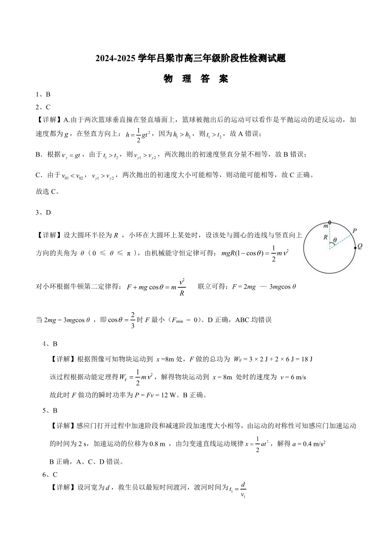 山西省吕梁市2025届高三上学期11月期中考试物理答案