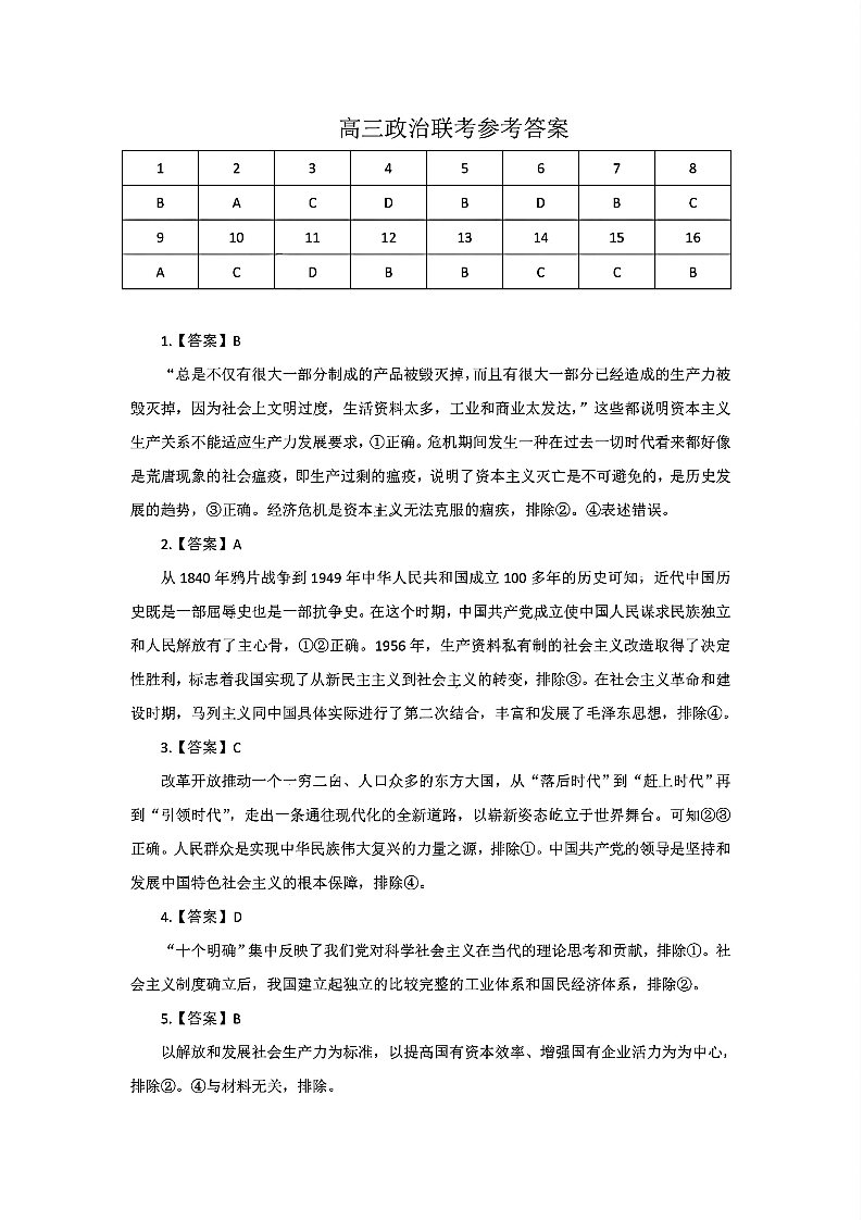 山西省吕梁市2025届高三上学期11月期中考试政治答案