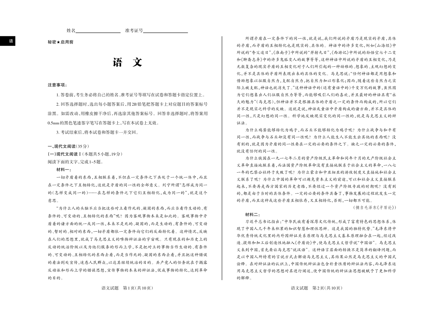 山西省思而行2025届高三备考核心模拟中期考试语文