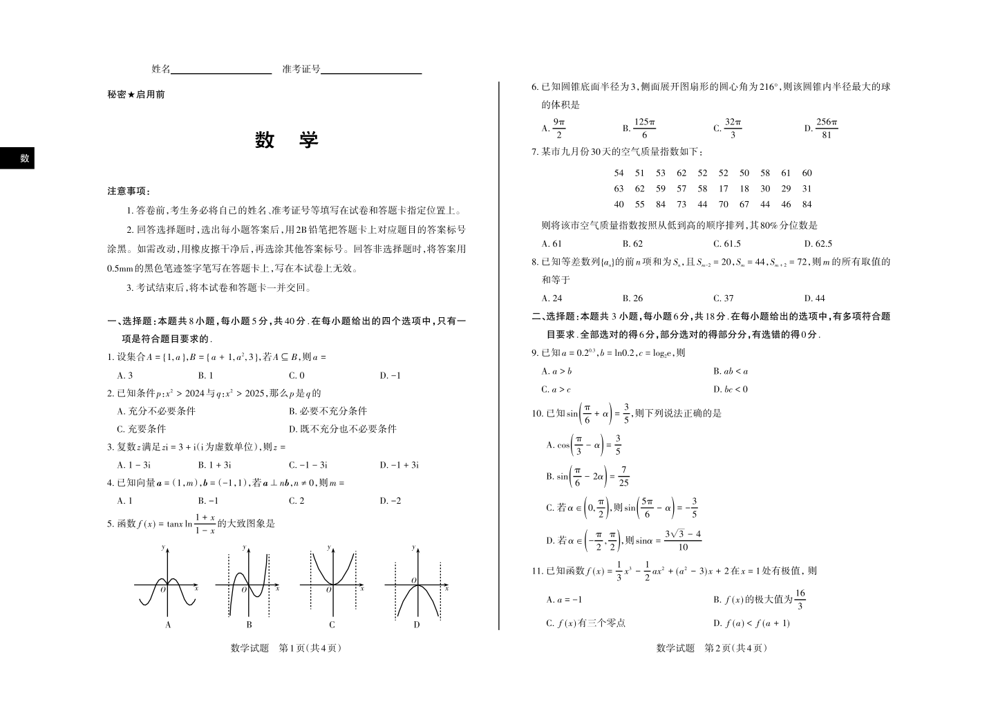 山西省思而行2025届高三备考核心模拟中期考试数学