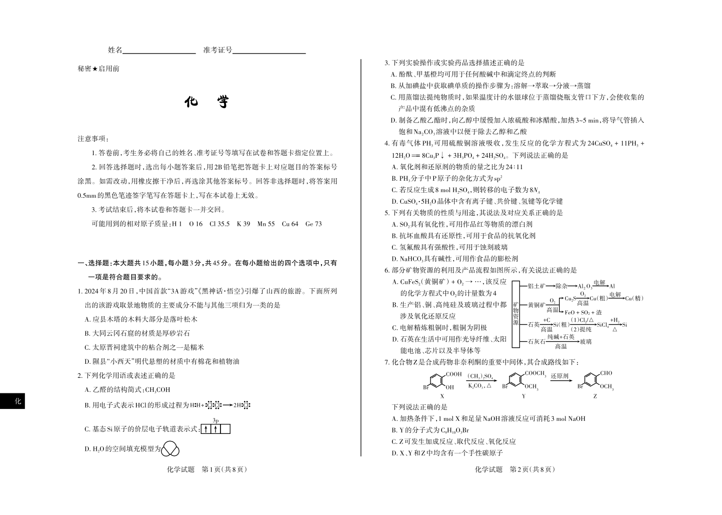 山西省思而行2025届高三备考核心模拟中期考试化学