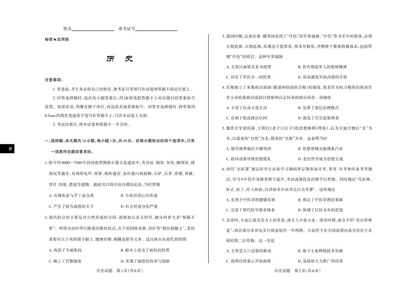 山西省思而行2025届高三备考核心模拟中期考试历史