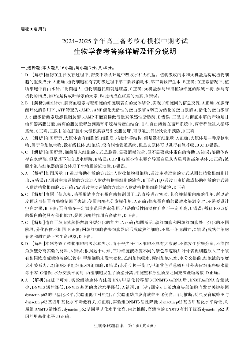 山西省思而行2025届高三备考核心模拟中期考试生物答案