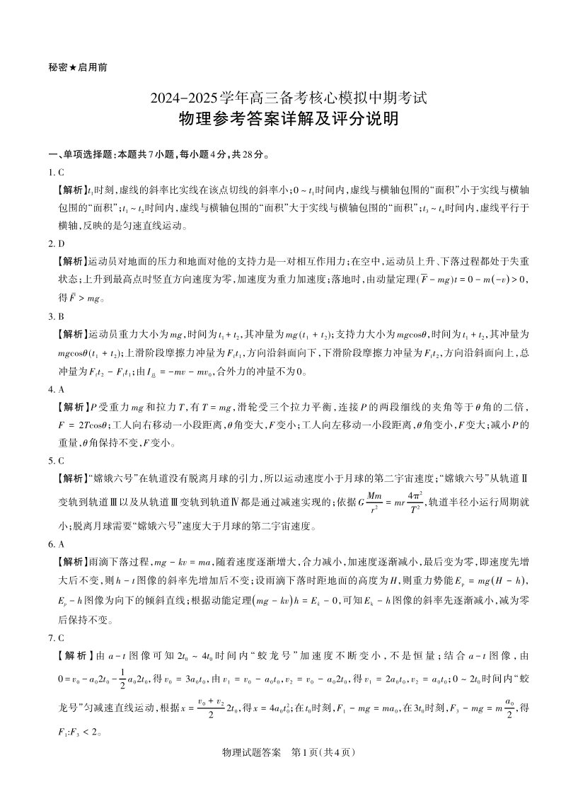 山西省思而行2025届高三备考核心模拟中期考试物理答案