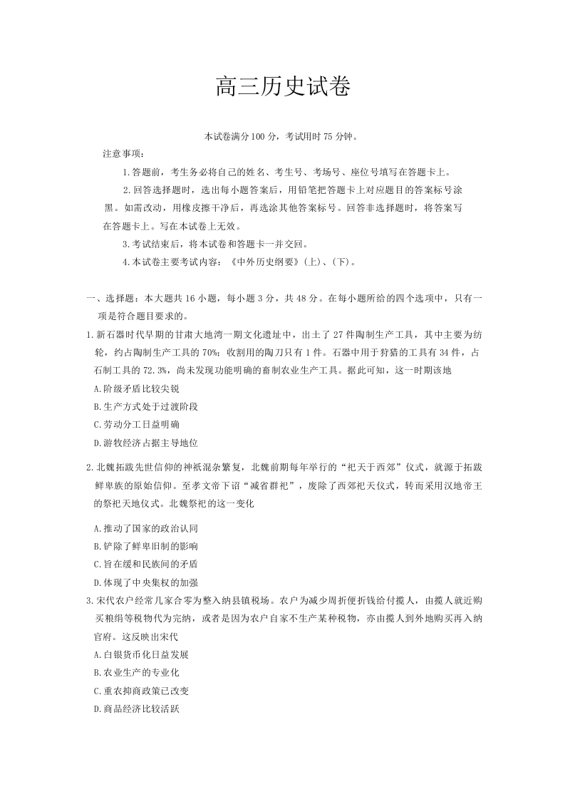 陕西省区域2025届高三上学期11月期中考试历史+答案