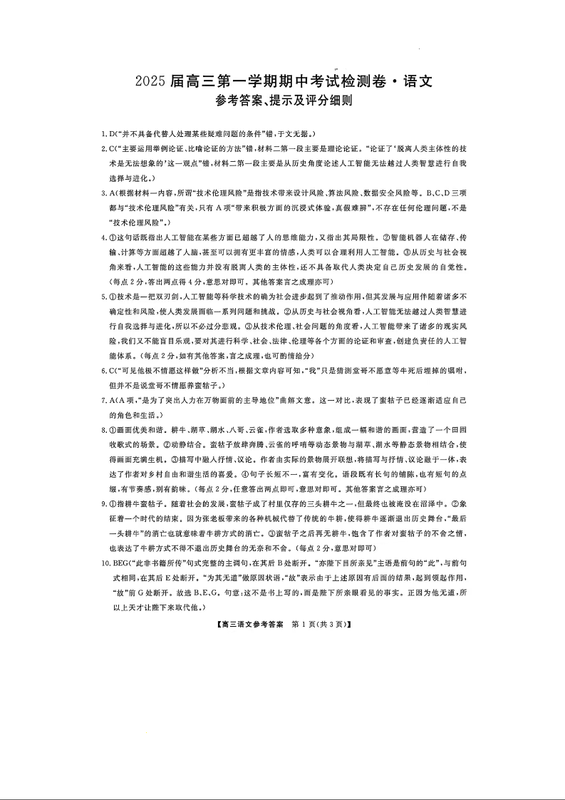 陕西省十七校2025届高三上学期11月期中联考语文答案