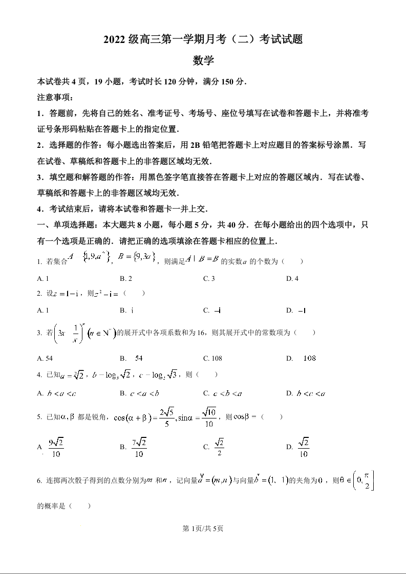 陕西省西安市2025届高三上学期11月联考一模数学(原卷版)