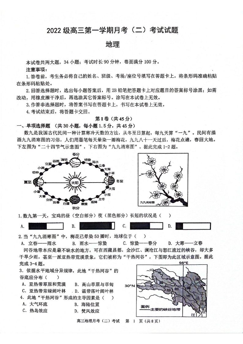 陕西省西安市2025届高三上学期11月联考一模地理+答案
