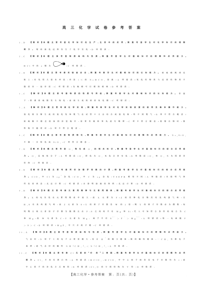 新疆维吾尔自治区片区2025届高三10月联考化学答案