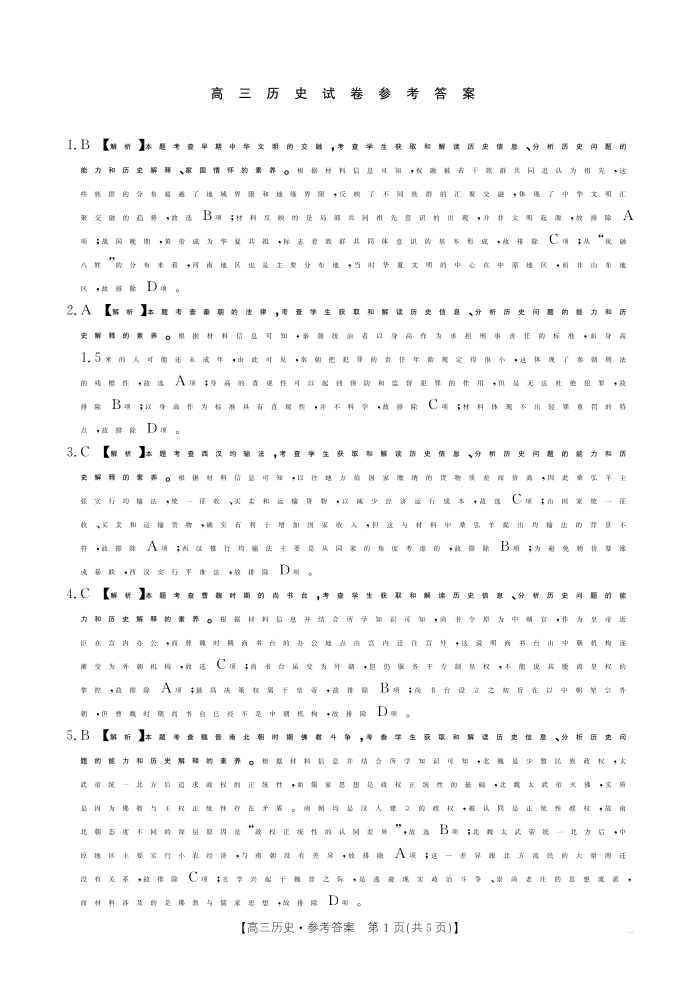 新疆维吾尔自治区片区2025届高三10月联考历史答案