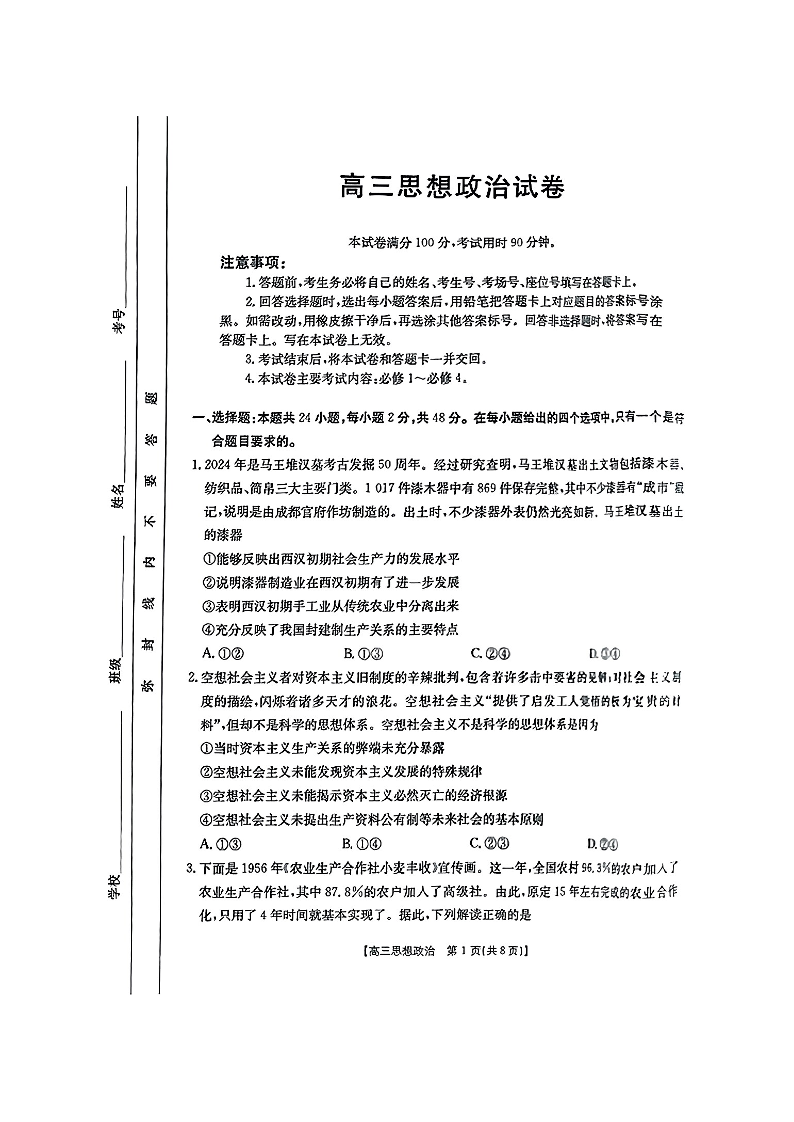 新疆维吾尔自治区片区2025届高三10月联考政治